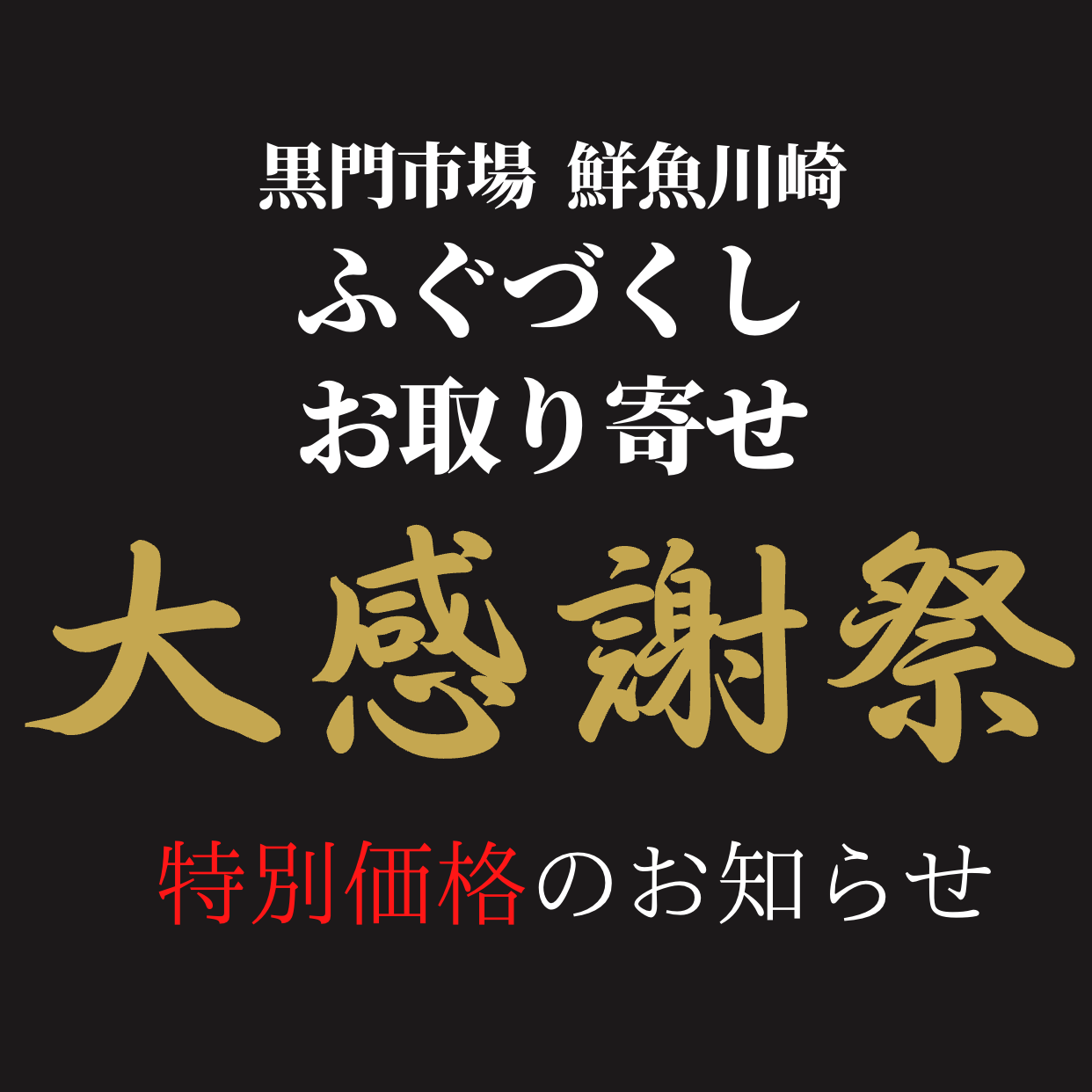 すべて表示 最近の魚達 魚のうんちく 業界情報 店舗情報 ピックアップ一覧 店舗情報 黒門市場 鮮魚川崎 活とらふぐづくしセット「大感謝祭」特別価格のお知らせ! 2026.01.29 店舗情報 お正月も営業しております。 2026.01.01 店舗情報 あけましておめでとうございます! 2026.01.01 店舗情報 全国で宅急便の遅配が相次いでいます! 2025.12.28 店舗情報 FAQ..大雪や台風・地震などの災害時で荷物の配送が遅れる場合は、連絡はもらえますか? 2025.12.16 最近の魚達 ’天然とらふぐ‘入荷しました! 2025.12.08 店舗情報 12月(特に年末)の配送遅配にご注意ください。 2025.12.08 店舗情報 ’ふぐづくし白子セット’の白子に関しまして。 2025.11.08 最近の魚達 松葉ガニ解禁です! 2025.11.05 店舗情報 鮮魚川崎”ふぐづくしお取り寄せ ”2025年販売開始!”早割特価で年末年始の予約受付中” 2025.11.01 店舗情報 ”2025年11月1日より販売開始 ”鮮魚川崎”ふぐづくしお取り寄せ 2025.10.29 最近の魚達 ’活け車海老’泳いでます! 2025.10.01